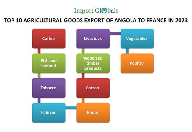 Que. What is the top agricultural goods export of Angola to France in 2023?