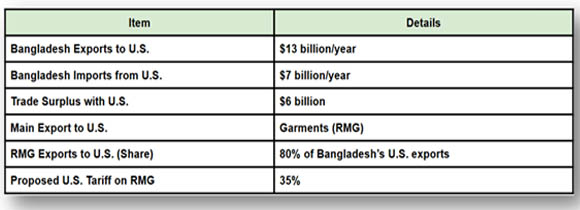 With shipments totaling more than $10 billion annually, the United States is the biggest single-country market for Bangladeshi clothing, according to Import Globals. Bangladesh's competitive pricing advantage would be severely impacted by a 35% levy, which would cause orders to shift to competitors like Vietnam, Cambodia, and Mexico. A tariff shock might have serious social and economic repercussions because the garment industry employs over 4 million people, the majority of whom are women.
