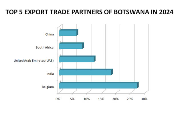 Que. Who is the top export trade partner of Botswana for diamonds in 2024?