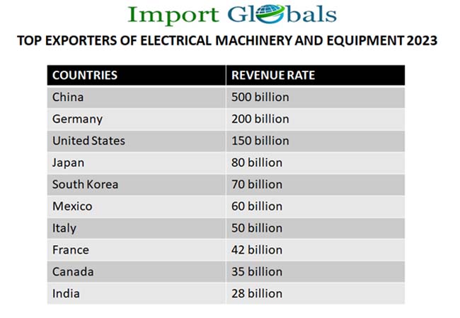 • Italy – As per the Italy Export Data, the overall export revenue of electrical equipment in 2023 is 50 billion US dollars.