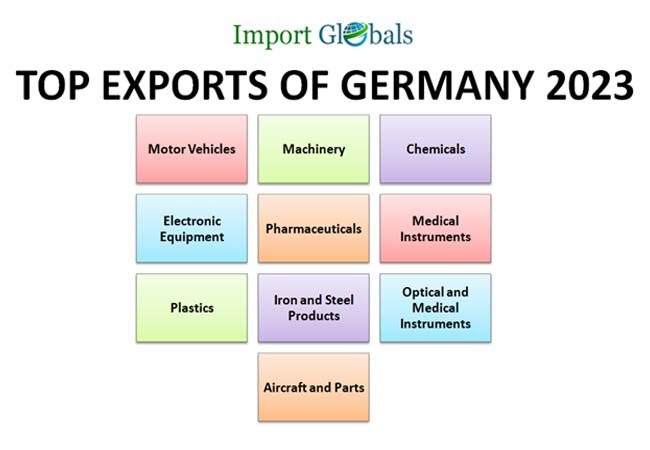 • Motor Vehicles – Total valuation of Motor Vehicles exports from Germany in 2023 – 278 billion US dollars.