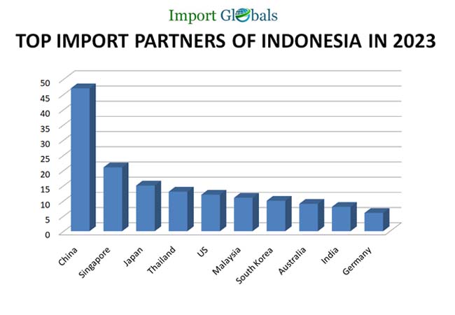 • China – According to China Import Data, the valuation of imports from China to Indonesia in 2023 – 47 billion US dollars.