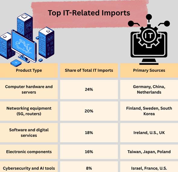 Data centers and cloud computing: As per Romania Importer Data by Import Globals, Multinational corporations are helping Romania's data environment grow by bringing in servers, networking devices, and security solutions. Romania's businesses and government are turning digital via buying software, digital platforms, and business solutions.