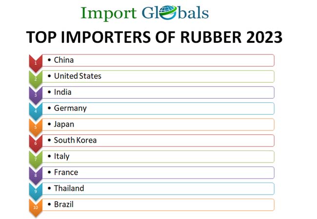 3. India – According to the India Import Data, the total import trade value of rubber in India 2023 – 6 billion US dollars.