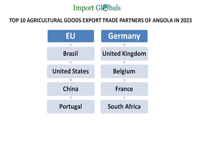 Ans. The EU is the top agricultural goods export trade partner of Angola in 2023.