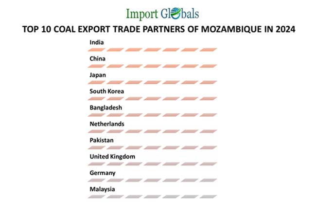 Ans. India leads the top coal export trade partner of Mozambique in 2024.