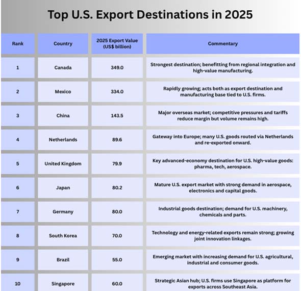 The Trade Data Indicates Where the Most U.S. Goods Will Go in 2025