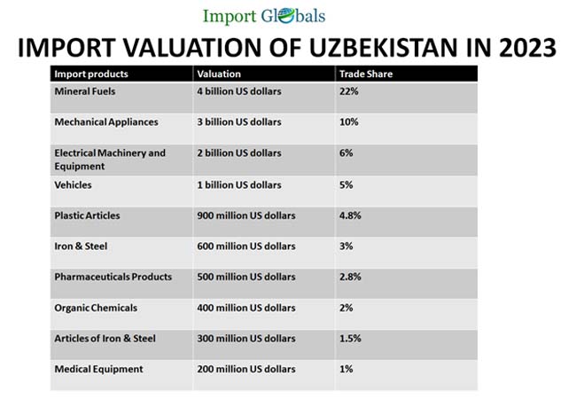 Ans. At Import Globals, you can get a detailed trade analysis of Uzbekistan in 2023.