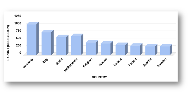 The export market in Europe is expected to grow by about 1.5% annually from 2023 to 2024, reaching a total value of about USD 7.2 trillion. Based on Europe Trade Data by Import Globals, strong demand for automobiles, chemicals, industrial machinery, and high-tech equipment, all of which combined account for more than 55% of Europe's overall export value, is the primary driver of this development. With almost 20% of all EU exports, Germany continues to be the continent's biggest exporter, followed by France, Italy, and the Netherlands. Despite obstacles like inflation and changes in the energy supply, the region's trade agreements with important partners like the US, China, and the UK continue to sustain this steady export performance.