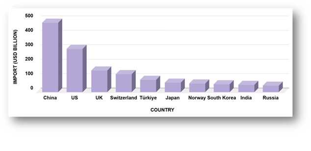 Due to decreased energy import prices and tempered demand for raw materials, Europe's overall import value is projected to be about USD 7.0 trillion in 2024, a minor decrease of almost 3% from 2023 values. As per Europe Import Export Data by Import Globals, energy alone makes up almost 20% of all imports, with crude oil, natural gas, electronics, and machinery continuing to be the top import categories. China, the United States, Russia, and Norway are the EU's top import partners. Europe maintains a balanced trade flow despite the slight decline in import values, with an expected USD 200 billion overall goods trade surplus for the year, up from a deficit two years prior. This surplus demonstrates Europe's robust internal market and great export competitiveness.