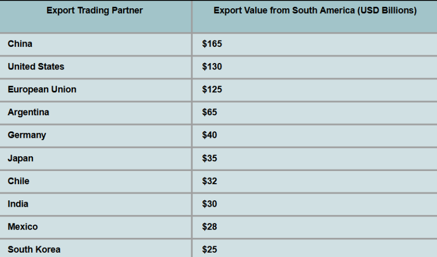 Top 10 South America Export Trade Partners : SOUTH AMERICA EXPORT DATA
