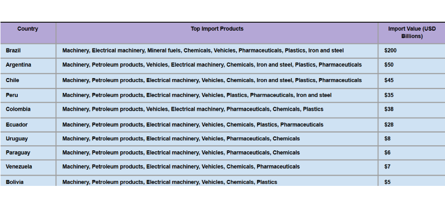Top 10 South American countries’ Import Products : SOUTH AMERICA TRADE DATA