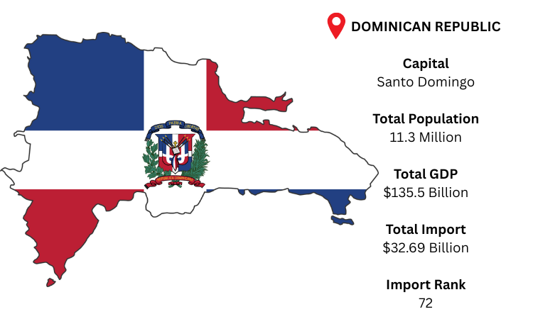 A significant Caribbean economy, the Dominican Republic has robust industrial, tourism, and energy industries. The capital, Santo Domingo, serves as the hub for commerce and banking. According to the Dominican Republic import data, approximately 11.3 million people live there, and its GDP is estimated to be USD 135.5 billion.