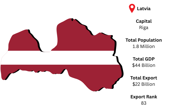 An important export route between the European Union and Eastern Europe is Latvia, a strategically located Baltic country in Northern Europe. Its economy is mostly dependent on the export of agricultural products, equipment, and timber. The nation's capital and primary hub for industry and logistics is Riga. As per Latvia export data, with a population of over 1.8 million and a GDP of approximately USD 44 billion, Latvia is expected to have an open and trade-focused economy, with total exports of about USD 22 billion.