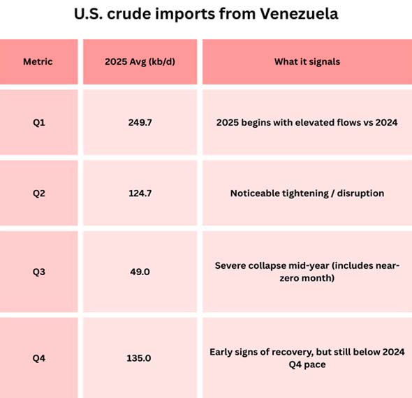 Heavy, sour grades that complicated Gulf Coast refineries can operate well to get the most diesel and other high-value products. But the story hasn't been a simple "return to normal" in 2025–2026. Instead, there has been a stop-start cycle caused by licensing, compliance risk, shipping limits, and changing U.S. policy goals. Then, in early 2026, there was a sudden turn toward more structured, deal-driven flows.