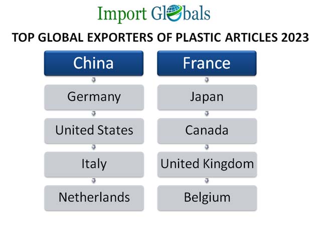 • China – According to China Import Data, the import trade value of plastic articles in 2023 is 40 billion US dollars.